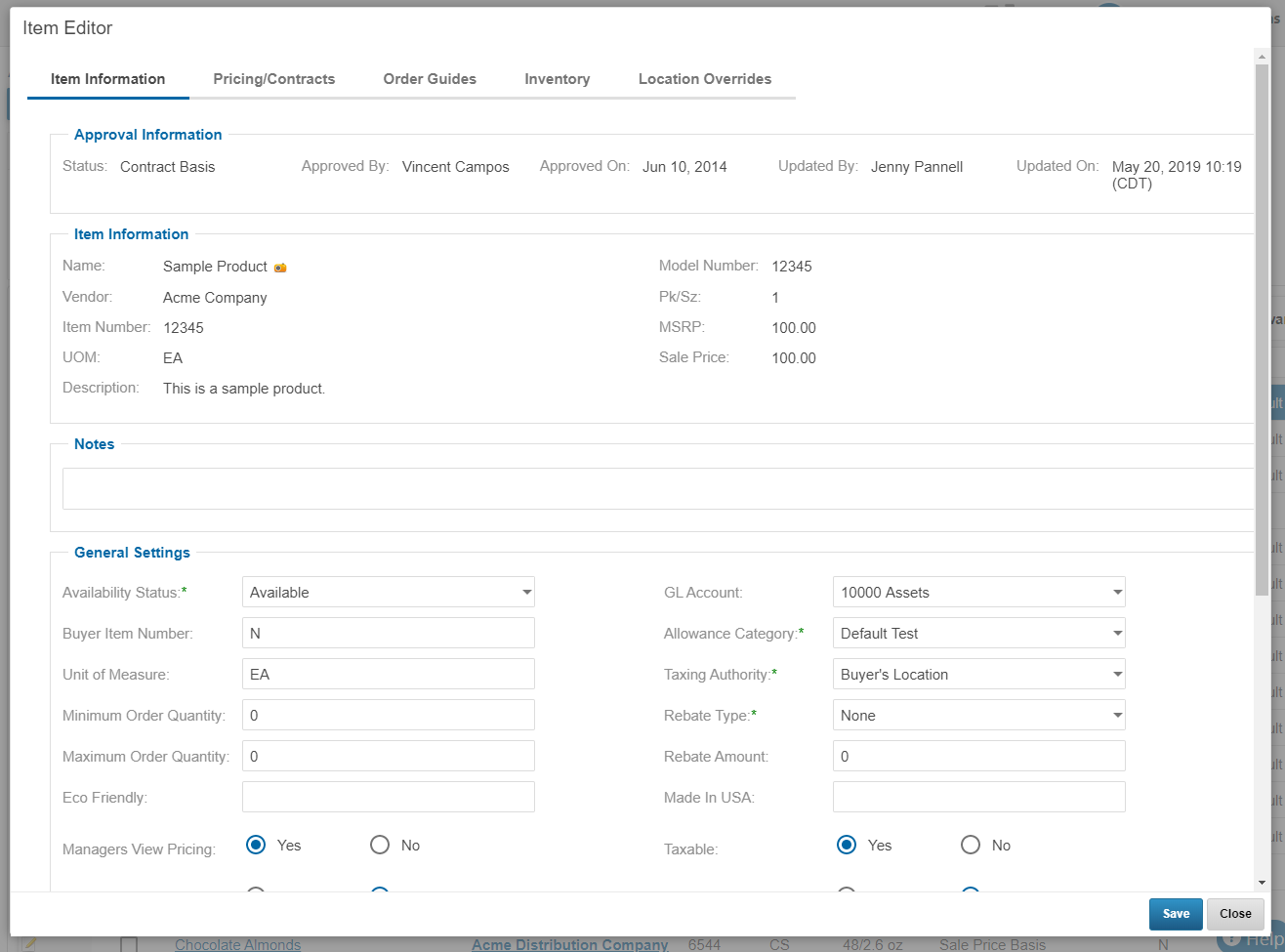 This documentation will explain how to use the Approved Items editor, which allows you to customize various details of an item: