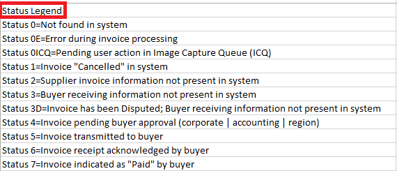 A legend describing each Invoice Status is provided on the top of this report.