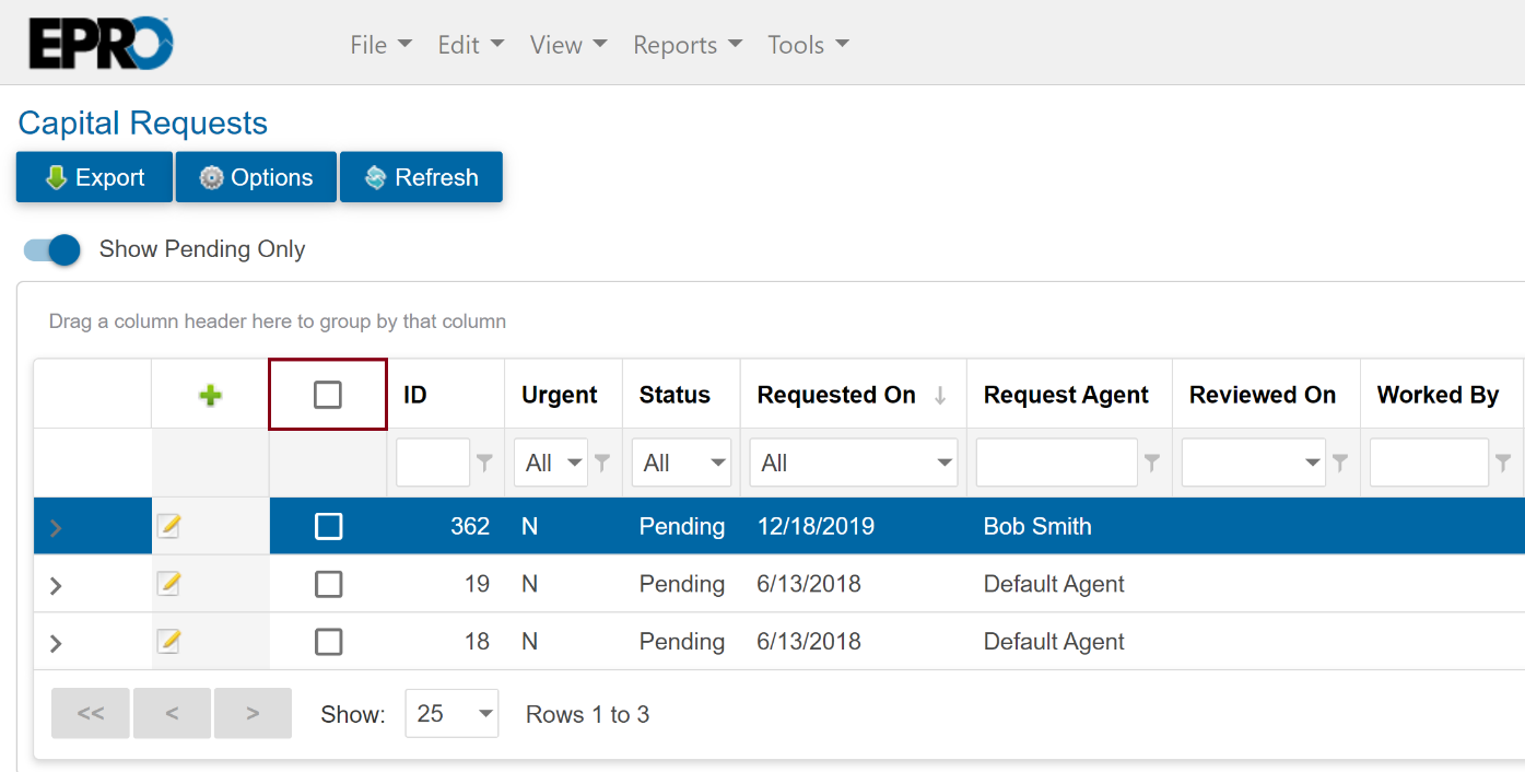Go to View > Capital Projects > Capital Requests.