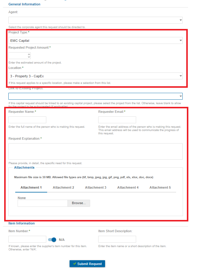 Using the Captial Requests form provides the ability to request a new project. All required information will be reviewed and approved or declined by designated Capital Request Reviewers. The Capital Request Reviewer has the option to have the Project automatically created based on the criteria in this form.